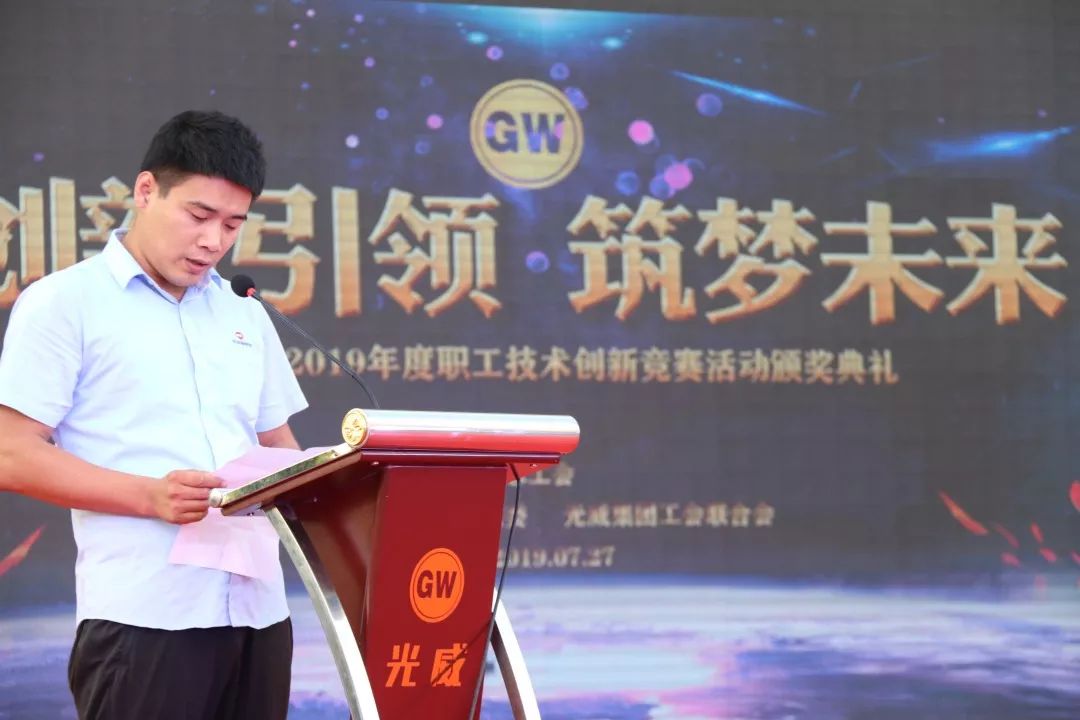 7月27日18時許,由威海高新區(qū)總工會指導、光威集團黨委和光威集團工會聯(lián)合會共同主辦的光威集團2019年度職工技術(shù)創(chuàng)新競賽活動頒獎典禮在集團公司隆重舉行。
