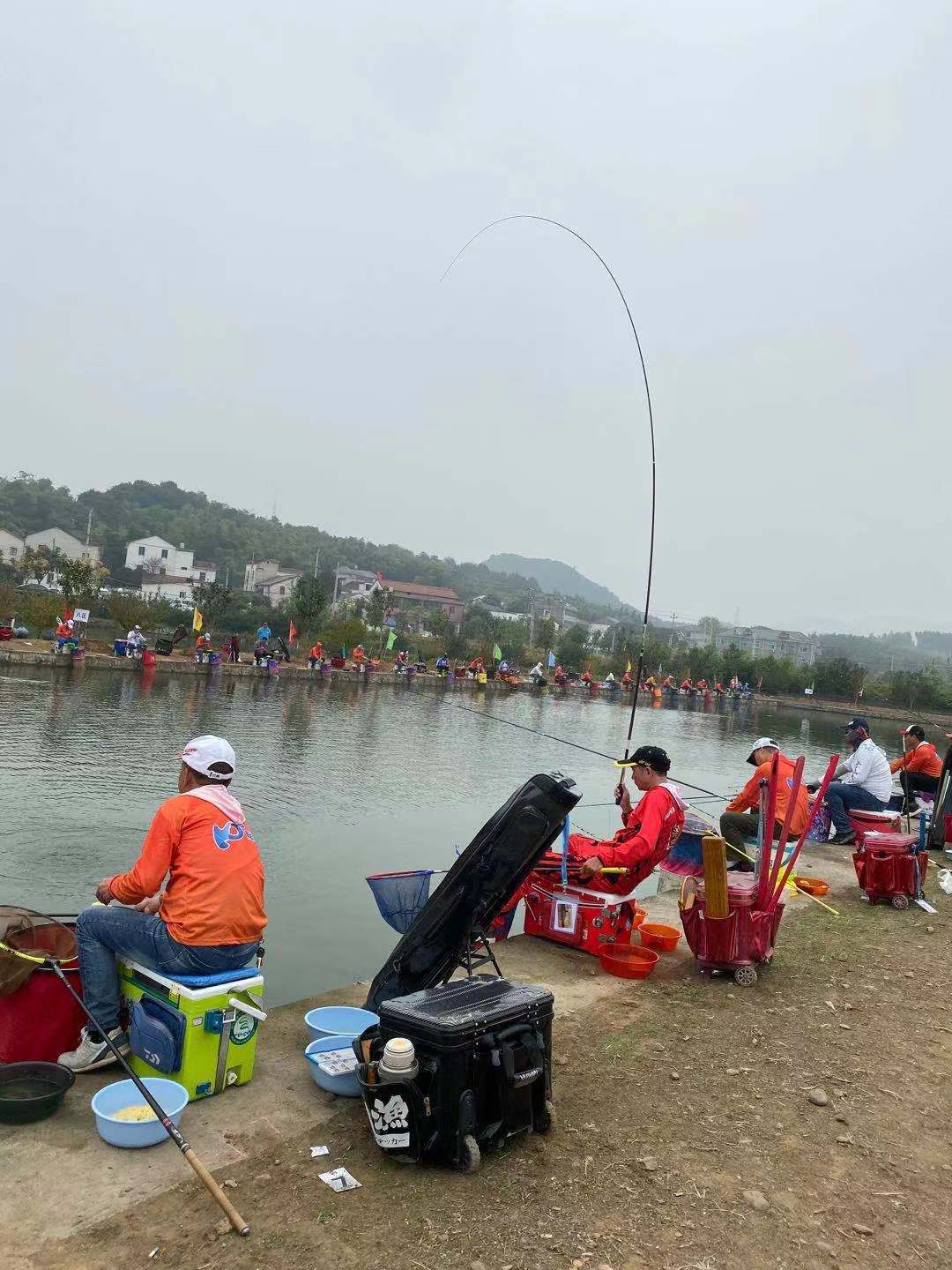 選手們擺開陣勢(shì),打開釣竿,掛上魚餌,嫻熟的揮動(dòng)釣竿,在空中劃過(guò)一條條優(yōu)美的弧線,大家憑著各自豐富的經(jīng)驗(yàn),向比賽前八名發(fā)起沖擊。環(huán)繞全場(chǎng),在眾多的選手中,我不出意外的看到了很多熟悉的面孔:一級(jí)大師王海寧,準(zhǔn)一級(jí)大師呂東、李偉、周立峰,二級(jí)大師鄭斌、方斌、李承鋒、李其龍,三級(jí)大師邊奇鋒、馬金巍、盧旭紅等等。眾多浙江知名競(jìng)釣高手齊齊出現(xiàn)在比賽現(xiàn)場(chǎng),一時(shí)間真是大師云集,群星璀璨啊!
