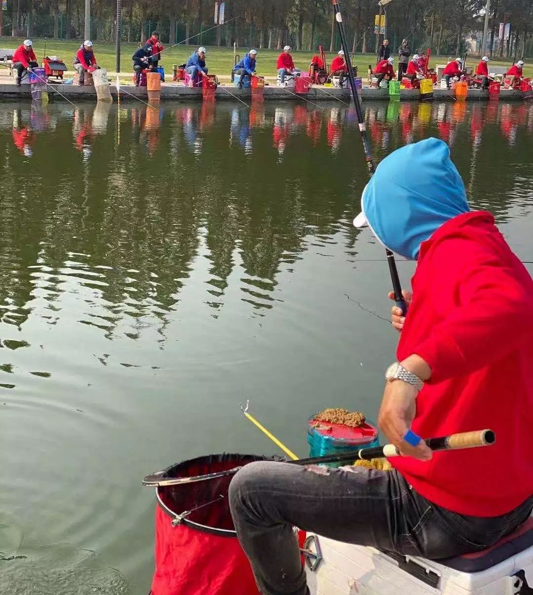 比賽現場,選手們精神抖擻,有的專心致志地掛餌、拋竿、觀漂、提竿,屏息凝神地觀察著浮漂動靜,耐心等待魚兒上鉤。