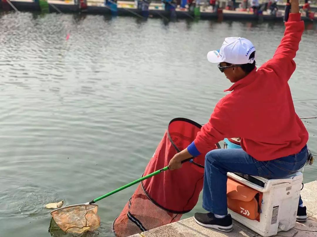 8時整,“啪”的一聲,鄧總打響了全場比賽開始的槍聲。參賽選手們紛紛將手中的魚鉤拋向競技池,全神貫注地投入到比賽當中。
